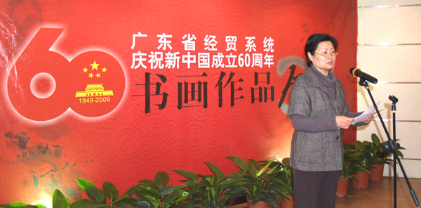此次展出的114幅书画作品,均为汕头、佛山、韶关、河源、梅州、汕尾、江门、阳江、肇庆、清远、揭阳等市经贸部门和省经信委机关及直属单位53位书画爱好者的精心之作。这些作品艺术技法娴熟、文化底蕴深厚,体现了作者对书画艺术的深刻认识、对传统精神的透彻领悟、对祖国文化的深深眷恋、对祖国发展的坚定信心和热切期盼。在我们伟大祖国六十华诞之际,经贸系统书画家们爱党、爱国、爱生活的满怀情意跃然纸上。参展作品体现的团结奋进、昂扬向上精神,将成为全省经信系统精神文明建设的宝贵财富,激励我们为共建全省经济和信息化事业的和谐团队,推进经济和信息化事业科学发展而努力奋斗。