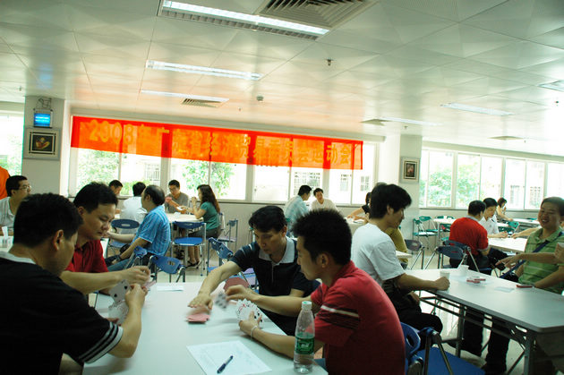 省经贸委运动会棋牌类比赛(扑克“拖拉机”、象棋)分别于8月17日和8月23日顺利举行。在8月17日举行的“拖拉机”大赛中,共122人次参加比赛。经过近10个小时的激烈争夺,机关队组合叶凤萍/陈伟川力克群雄,获得“拖拉机”比赛冠军。电子队组合邱宏斌/贺耀斌、林斌/陈晓萍包揽亚军和季军。