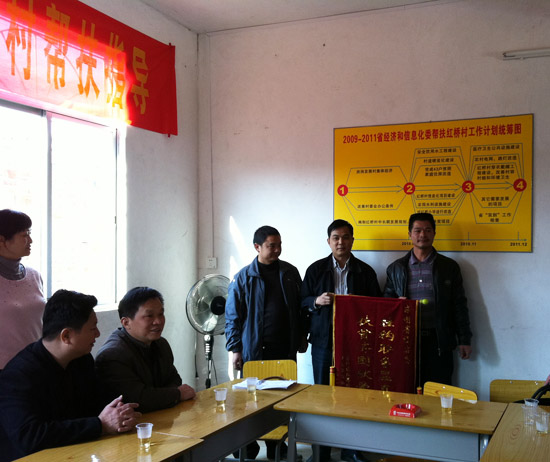 在工作交流座谈会上,邹生副主任听取了村、镇、县、市以及驻村工作组对扶贫开发工作的汇报。邹生副主任指出,去年我委对口红桥村的扶贫开发“规划到户、责任到人”工作,在河源市各级政府部门、驻村工作组和相关处室单位的大力支持下,取得了不错的成绩。今年是“规划到户、责任到人”工作攻坚决胜之年,希望新的驻村工作组进一步加大力度扩大成果,重点要抓好“一户一法”以及产业化扶贫的两项重要任务,确保贫困户100%脱贫,圆满完成我委扶贫开发“规划到户,责任到人”的目标;红桥村“两委”干部要进一步增强工作的主动性,充分调动贫困户脱贫致富的积极性,扶贫的同时要加强“扶志”;要加快推进红桥村农村信息化进程,充分利用信息化手段,打造扶贫开发工作亮点,提升村民精神面貌和增强脱贫致富的信心。座谈会上,红桥村党支部和红桥村委向我委赠送了“挂钩联系显真情,扶贫济困献爱心”的锦旗。