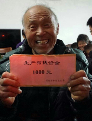 贫困户领取帮扶生产资金