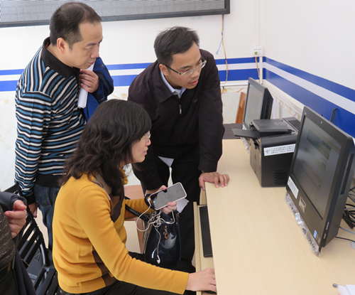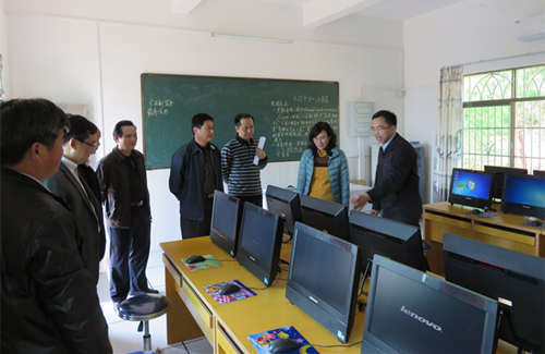 吴育光、张文献、陈少媚一行参观三联小学计算机室