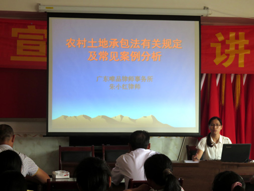 讲座上,朱小红律师用浅显易懂的语言,介绍了最基本、最常见、最实用的农村相关法律知识,并重点讲述了农村土地承包法有关规定。讲座现场村民聚精会神,认真听课,反响热烈。此次讲座既有实用法律条文介绍,又有案例分析,使村民听得懂、听得进,对普及法律宣传、提高村民法律意识起到了积极的作用。课后,应群众的要求,朱小红律师还专门就山林纠纷等事宜的咨询一一进行了解答。