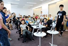 夏令营里,孩子们参与智能机器人亲密互动,感受科技创新的科学之旅。活动不仅有机器人酷炫舞蹈表演,还有亲子家庭互动体验;中学生们进行机器人组装编程,自行控制机器人,体验科技的奥秘,活动丰富令孩子们大开眼界。