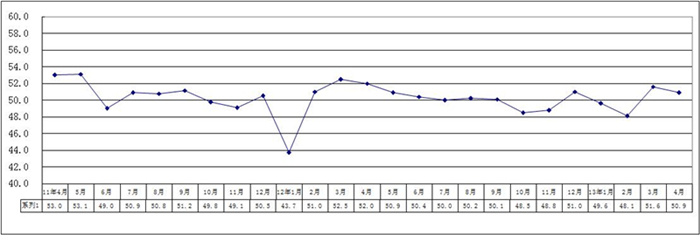图1 2011年4月-2013年4月广东省重点企业PMI趋势图