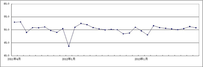 图1 2011年4月-2013年10月广东省重点企业PMI趋势图
