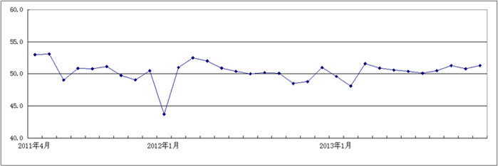 图1 2011年4月-2013年11月广东省重点企业PMI趋势图