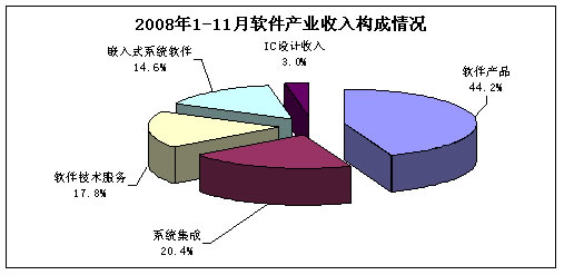 软件产业各类收入中,软件产品仍是主要构成部分,1-11月共完成收入3085亿元,占软件产业总收入的44.2%,增长32%,增速比去年同期高11.5个百分点。