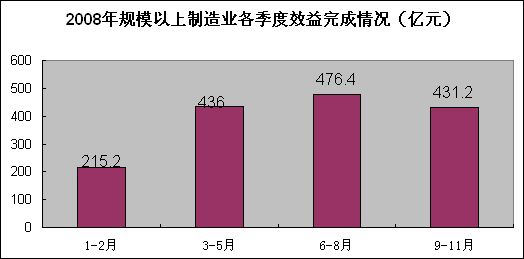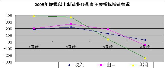 (一)产业增速呈现前高后低态势。从收入看,上半年产业增速一直保持20%以上的水平,下半年起开始逐月回落,11月、12月规模以上制造业收入同比分别下降0.1%、2.1%。从效益看,1-5月规模以上制造业利润增长20%以上,6-8月增速回落到4.1%,9-11月出现负增长(-23.9%)。从出口看,上半年出口增速达到23.6%,至9月底降至20.5%,全年仅为13.6%,比上半年下降10个百分点。