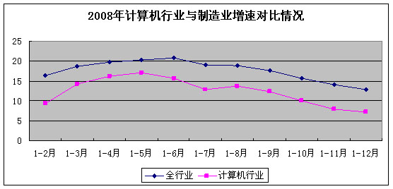 图1 2008年计算机行业与电子制造业收入增速对比情况