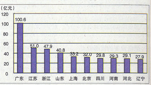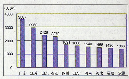 图10.2009年1月移动电话用户排名前十的省份
