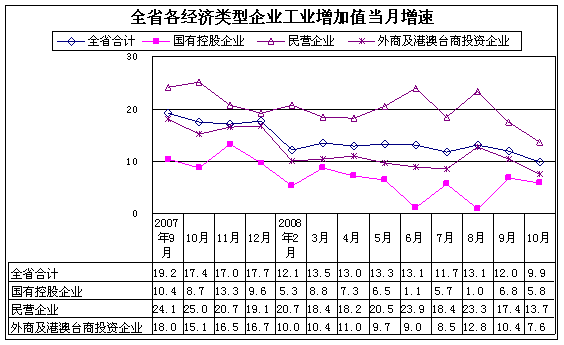 1-10月,规模以上民营工业企业完成增加值3237.05亿元,同比增长19.5%,比全省增幅高6.5个百分点,比国有控股企业、外商及港澳台投资企业增幅分别高出10.5、8.8个百分点。外商及港澳台投资企业对外部需求依存度高,增速回落较大。