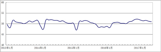 图1 2013年1月-2017年5月广东省重点企业PMI趋势图