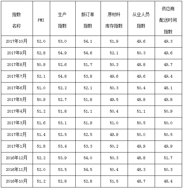 2017年10月,广东省制造业采购经理指数(PMI)为52.0,较上月回落0.8个百分点(见图1),较去年同期高0.8个百分点。本月指数虽较上月有小幅回落但仍处于较高增速区间,表明我省工业经济平稳增长的基础扎实,显现出稳中向好的趋势。在省市合力推动工业项目投资促进工业发展的基础上,在各地市即将相继出台的支持实体经济细则的政策效应影响下,四季度我省工业经济将继续保持稳增速、高质量的运行态势。具体情况如下: