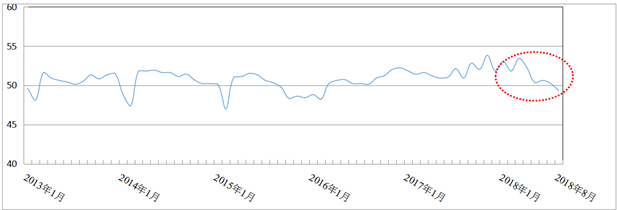 图1 2013年1月-2018年8月广东省制造业PMI趋势图