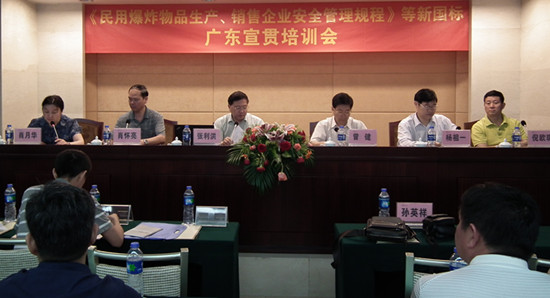 为认真学习、全面贯彻落实《民用爆炸物品生产、销售企业安全管理规程》(GB28263-2012,以下简称“新《规程》”)的条款和要求,提高我省民爆行业安全管理水平,2012年5月20日-21日,广东省经济和信息化委特邀新国标主要编写人员到广州开展新《规程》等国标宣贯培训会,会议由工信部安全生产司科技处肖月华调研员主持,工信部安全生产司科技处张利洪处长就新《规程》的修订背景、调整内容、要点特点等进行了介绍,中国爆破器材行业协会杨祖一副秘书长、南京理工大学倪欧琪教授分别就《规程》、《工业炸药分类和命名规则》(GB/T17582-2011,以下简称《命名规则》)进行了详细宣贯、讲解。全省各级经济和信息主管部门、各民爆物品生产、销售企业的负责人及安全管理人员约300人参加了宣贯培训。