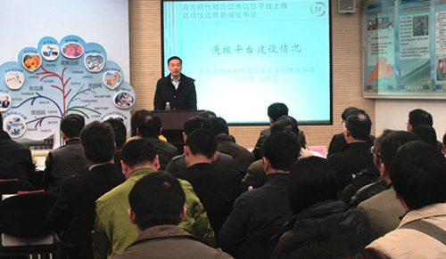 2013年12月17日下午,中国首个跨区域、跨行业、综合性、国际化物流信息平台---南方现代物流公共信息平台(以下简称“南方平台”)正式上线。平台牵头建设单位广东省经济和信息化委党组副书记、巡视员戚真理通报了南方平台的建设情况。工业和信息化部、商务部、中国物品编码中心领导分别为大会致辞。平台上线新闻发布会由广东省经济和信息化委员会主办,广东省信息中心、广东省数字广东研究院等单位承办。在发布会上,南方平台建设单位与20家企业签订了战略合作协议。