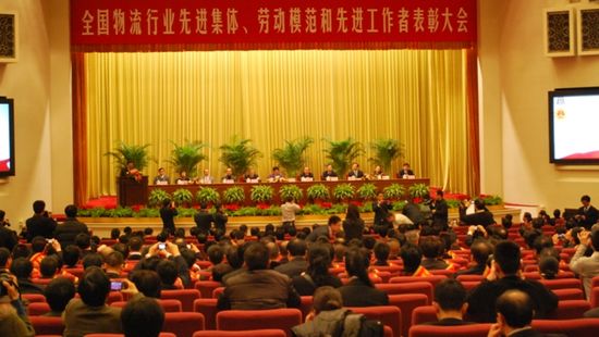 12月18日,人力资源和社会保障部、中国物流与采购联合会在北京人民大会堂,举行全国物流行业先进集体、劳动模范和先进工作者表彰大会。十届全国人大常委会副委员长顾秀莲、人力资源社会保障部副部长杨志明、国务院国资委副主任邵宁、中国物流与采购联合会会长何黎明等领导同志出席会议,来自国家有关部委,各省市区物流主管部门、物流行业协会的有关同志,以及被评为全国物流行业先进的集体、个人共600余人参加了会议。