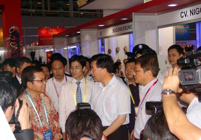 汪洋和省委常委、秘书长徐少华一起,在主办方有关负责人的陪同下,兴致勃勃来到会展中心,先后参观了博览会国际馆、亚欧馆、韩国馆和中小企业服务馆,并与参展客商交谈。韩国是本届中博会的主宾国,共有335家企业前来参展。汪洋代表广东省委、省政府对他们为中博会的顺利举办作出的努力表示感谢。他说,加强交流与合作使中韩两国的企业互利互惠,长期坚持下去,中韩两国包括广东的企业受益会更大。印尼这次派出了200多个代表团参展,还带来了民族风情舞蹈吸引客商。汪洋高兴地坐下来品尝他们的传统美食,仔细听取了客商们的意见和要求。他对印尼的企业家们说,他刚从印尼访问回来,广东与印尼有着非常广阔的合作前景。在西班牙客商的展位前,气氛格外热烈。客商们对本届博览会的组织表示非常满意,并对西班牙明年将作为主宾国与中国一起举办下一届博览会充满期待。汪洋说,他同样期待西班牙明年成为博览会的主宾国,中小企业博览会作为亚欧会议的一个重要成果,要让它取得更大成效,还需要我们持之以恒的努力。目前世界中小企业普遍遇到一些困难,让我们一块努力战胜困难。参观中,汪洋一再叮嘱有关部门负责人,要为广大中小企业提供更多信息化等方面的服务。他满怀信心地说,在市场经济的激烈竞争中,中小企业有其特殊的优势,改革开放30年来,广东培育起来的中小企业的拼搏精神和适应市场经济的能力都比较强,是不会被当前的困难压倒的。