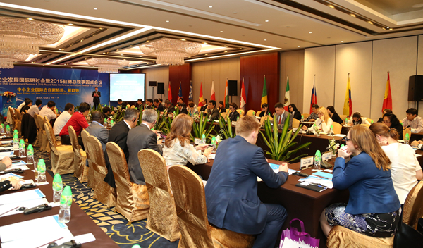 10月11日下午,第十二届中博会中小企业发展国际研讨会暨2015驻穗总领事圆桌会议在广州花园酒店举行。中博会组委会秘书长、广东省政府副秘书长卢炳辉,中博会组委会秘书处副主任、中国工业和信息化部中小企业局副局长田川,中博会组委会秘书处副主任、广东省中小企业局局长姚德洪,广东省外事办公室副主任罗军等出席会议。