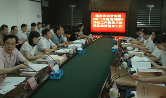 5月28日下午,省实施《珠江三角洲改革发展规划纲要(2008-2020年)》(下称《珠三角规划纲要》)工作组第八组陈雄贵组长一行8人莅临我委,对我委2011年度实施《珠三角规划纲要》及实现“四年大发展”工作情况进行考核。杨主任代表我委向考核组作了工作汇报,林位超副主任及产业政策处等18个相关处室负责人参加了汇报会。