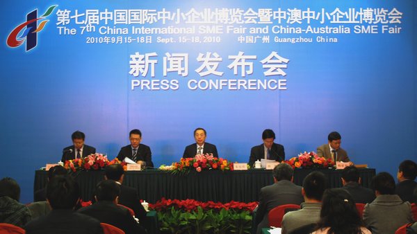 第七届中国国际中小企业博览会暨中澳中小企业博览会(以下简称第七届中博会)将于2010年9月15日至18日在广东省广州市举办。4月14日,第七届中博会新闻发布会在北京隆重举行。中博会组委会副主任、工业和信息化部总工程师朱宏任通报了第七届中博会的筹备情况。澳大利亚驻华使馆代表、使馆商务处魏威先生介绍了澳方参展的有关情况。发布会由中博会组委会秘书长、广东省政府副秘书长林英主持。中博会组委会副秘书长、广东省经济和信息化委员会主任杨建初,中博会组委会副秘书长、工业和信息化部中小企业司司长王黎明及各主办部委领导出席了会议。