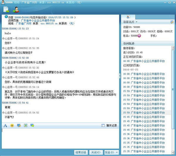 主持人 广东中小企业公共服务平台是首期十家国家示范公共服务平台网络建设单位之一,作为一个“好奇宝宝”,主持君一定要替大家试验平台是否实用的,在平台官网点了客服,一分钟内得到回应,先给大家看看我们聊了啥吧。