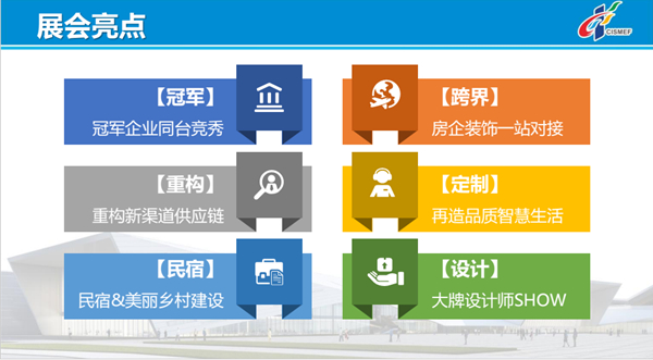 本届智慧家居与建材展得到了中国家具协会、全国工商联家居装饰业商会、中国建筑材料流通协会等国内众多行业组织的积极协办和大力支持,预计将超过12万人次到场共享盛会商机。展会将以“产业联动,全能对接”为理念,致力“重构渠道供应链,智造高品质生活”,为泛家居建材企业和行业搭建更广泛、更高效、更专业的智能化、定制化、集成化的国际平台,帮助广大泛家居中小企业开拓内需市场和拓展一带一路“朋友圈”。