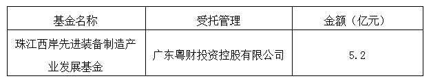 为贯彻落实省委、省政府关于珠江西岸先进装备制造产业带建设和清理盘活存量资金的工作部署,经省领导同意,2015年省财政拟增加安排5.2亿元至珠江西岸先进装备制造产业发展基金的受托管理机构(广东粤财投资控股有限公司),充分利用存量资金带动社会资本共同投入珠江西岸先进装备产业带建设,进一步加大对产业带建设的财政扶持力度。现予以公示,如有异议,请向省经济和信息化委(珠江西岸办)、省财政厅(工贸处)反映。