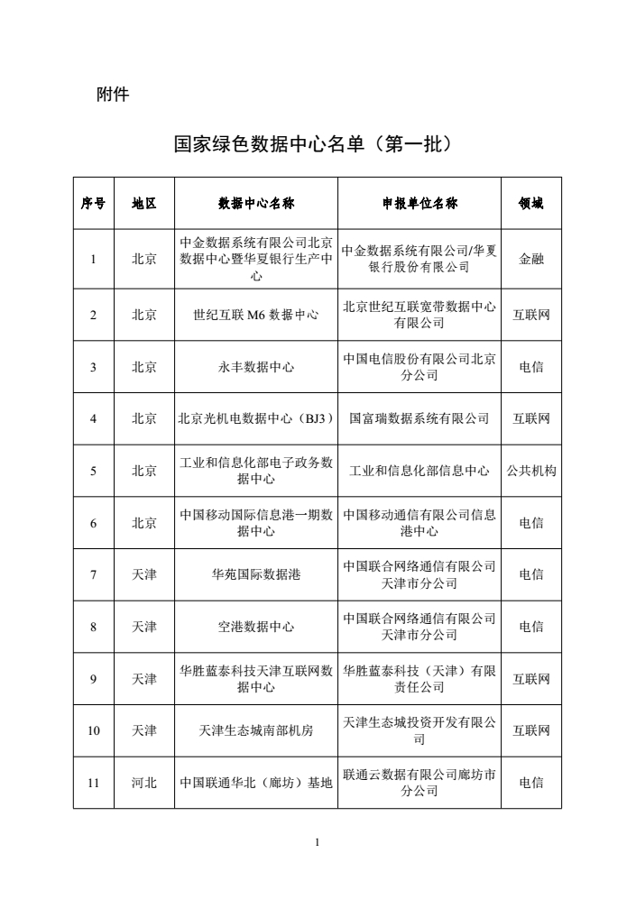 为总结推广国家绿色数据中心试点经验和做法,全面提升数据中心节能环保水平,经试点企业自评、各地工业和信息化主管部门初审、专家评审和公示等程序,工业和信息化部、国家机关事务管理局、国家能源局遴选出49家国家绿色数据中心。现予公告。