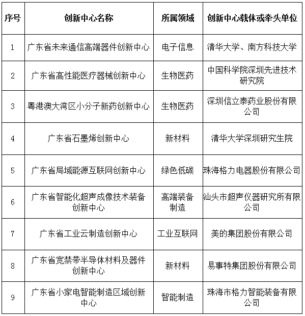 广东省经济和信息化委关于广东省制造业创新中心(第三批)筹建名单的公示