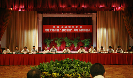 8月2日上午,省经济和信息化委召开实施党建创新“书记项目”专题动员部署会,深入学习贯彻省第十一次党代会和广东省庆祝中国共产党成立91周年暨创先争优表彰大会精神,落实省委组织部、省直机关工委抓基层党建创新“书记项目”的工作部署,动员全省经济和信息化系统机关基层党组织和广大党员,以实施党建创新“书记项目”为契机,扎实推进以保增长、扩内需、调结构、促转型、惠民生为中心的各项工作,确保今年下半年全省经信系统各项目标任务的落实。会议由省经济和信息化委主任杨建初同志主持,省经济和信息化委党组书记赖天生同志作动员讲话。在家的委领导同志和省中小企业局副局长,各地级以上市经济和信息化主管部门、顺德区经济和科技促进局主要负责同志、委机关各处室、各直属(代管)单位主要负责人共100余人参加了会议。