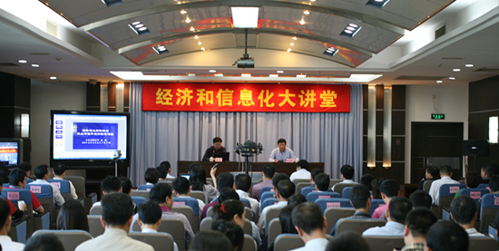 10月31日,省经济和信息化委举办2012年“经济和信息化大讲堂”第6期培训讲座,围绕学习贯彻胡锦涛总书记在中央政治局第33次集体学习时的重要讲话精神,坚持走中国特色、广东特点新型工业化道路,邀请工业和信息化部规划司顾强副司长作专题学习辅导,从理论和实践的结合上,加深对“六个着力推进”要求的理解,立足于把握党中央、国务院和省委、省政府对推进新型工业化的总体部署,进一步统一思想认识,找准工作的切入点、结合点、着力点,谋划具体思路举措,增强工作的使命感和责任感。讲座通过视频传输至各地级以上市经济和信息化主管部门、顺德区经济和科技发展局。省经济和信息化委主任杨建初主持讲座并发表讲话。省经济和信息化委党组书记赖天生和在家的委党组中心组成员、机关全体干部、直属(代管)单位中层以上干部,以及各地级以上市经济和信息化部门、顺德区经济和科技发展局班子成员和部分机关干部,共约 600余人参加了学习。