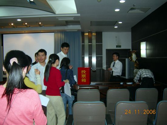 2006年11月24日下午,我委机关团支部在十二楼大型会议室进行了增选四名支部委员的选举活动。机关党办罗化林主任、人事培训处曾玉秀副处长、办公室吴东副主任莅临了选举现场。团委委员、各团支部代表列席了活动,选举活动由团委副书记兼机关团支部书记卢振港主持。