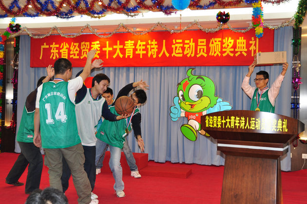 随后,颁奖嘉宾依次为十大青年诗人、十大运动员、运动会各项比赛的冠亚季军、课题调研前三名和省直机关青年岗位能手颁发奖杯、证书和奖牌。宋晶、胡兴华、卢振港、王克满、陈科、姚瑞婷、王婧、钟旗珈、傅妍敏、肖振宇荣获“省经贸委十大青年诗人”称号,宋晶《奥林匹克中华赋》荣获最佳主题诗歌,胡兴华《乡村五月天》荣获最佳非主题诗歌。张国凯(篮球)、洪蒙纳(男子羽毛球)、陈玉芳(女子羽毛球)、曾润志(男子乒乓球)、伍妙婵(女子乒乓球)、陈伟川和叶凤萍(扑克)、孙青林(中国象棋)、郁大忠(围棋)、刘巨强(毽子)、梅家春(登山)荣获省经贸委十大运动员称号。机关团支部《广东省产业转移的集聚发展路径调研报告》(指导:姚德洪;执笔:王婧、杨淑鹏、郑华、易贤辉),《省经贸委团建工作调研报告》(指导:刘俊兴;执笔:卢振港、张娜、陈科),博览团支部《韩资企业在华投资经营现状调查报告》(指导:汪盛波、冯志祥;执笔:林熹、杨小文、邓华)荣获课题调研前三名。