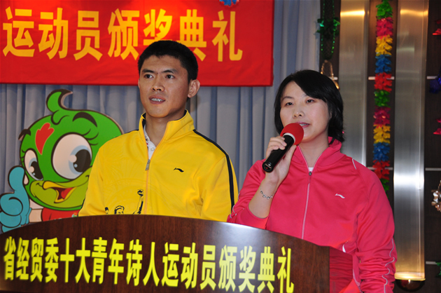 “啊,体育,天神的欢娱,生命的动力……”,颁奖典礼在新鲜出炉的省经贸委十大青年诗人共同演绎的顾拜旦的《体育颂》朗诵下,拉开了序幕。戚主任首先致辞,他指出,团委今年以“同一个世界,同一个梦想”为主题继续开展“五个一工程”活动,既紧紧围绕委的中心工作,又有鲜明的时代特征,激发了青年团员的热情,形成了很好的氛围。希望团委结合科学发展观开展更多更好的活动,勉励青年团员再接再厉,更上一层楼。