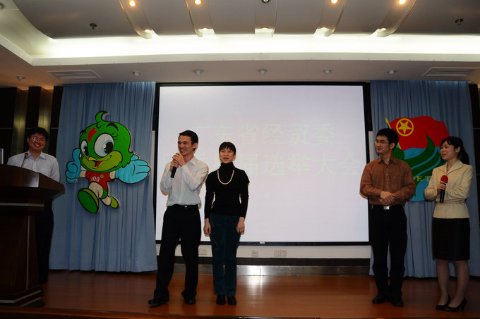 选举大会分为两个阶段。第一阶段是团委书记和副书记的选举,采取搭档参选的方式。经过报名和资格审查,谢斌(法规处)和樊丽雅(综合处)、肖振宇(人事培训处)和杨冬梅(省中小企业局)两对候选人参加竞选。两对候选人先后上台发表精彩的竞选演讲,然后抽签决定辩论题目正方反方,展开激烈的辩论。最后,经过全体团员投票,谢斌和樊丽雅以63票比40票的结果胜出。第二阶段由新当选的团委书记提名8名候选人角逐5名团委委员。8名候选人发表竞选演讲,经过团员代表投票,肖振宇、陈科(工业处)、梅家春(省电子所)、谭俊(信息中心)、张露璐(杂志社)等5人当选。新一届团委将于4月17日正式任职。