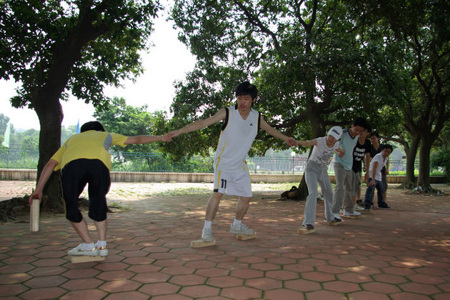 在抱团活动中,失败的队员正在接收惩罚