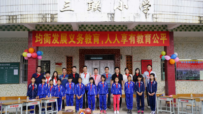 青年志愿服务队向三联小学捐赠了学习和体育用品,学生代表为青年代表佩戴了红领巾,机关团委与学校一起种植了代表关爱与感恩之情的友谊树。