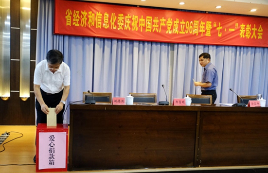 6月30日上午,省经济和信息化委召开庆祝中国共产党成立96周年暨“七一”表彰大会。委党组书记、主任涂高坤出席会议并作专题党课报告,强调要深入学习贯彻习近平总书记重要批示和省第十二次党代会精神,扎实推进“两学一做”学习教育常态化制度化,坚定理想信念,增强宗旨意识,弘扬优良作风,保持清廉本色,苦干实干、担当作为,绵绵用力、久久为功,以学习教育常态化制度化的实际成果,推动我省工业经济和信息化事业在新起点上继续走在全国前列,以优异成绩迎接党的十九大胜利召开。