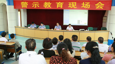 在高明监狱会议厅,大家认真听取高明监狱负责同志对高明监狱历史现状和对服刑人员管理情况的介绍,用心聆听两名职务犯罪服刑人员的现身说法。同时,参观了服刑人员的生活起居和劳动改造现场等场所。