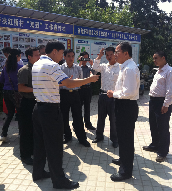 为认真贯彻落实我委扶贫开发“规划到户、责任到人”工作会议和杨建初主任讲话精神,10月21日,省经济和信息化委党组副书记、副主任邹生,党组成员、副主任林位超率园区处、原材料处、消费品处、电子快猫处、人事处、机关服务中心、省黄金公司有关人员近30人,赴河源市龙川县老隆镇红桥村,了解我委扶贫开发“规划到户,责任到人”工作进展情况,落实扶贫开发工作任务,并考察龙川县产业转移工业园发展情况。河源市、龙川县有关领导陪同一起考察。