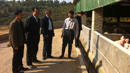 张文献局长一行先到贫困户张添勤家,参观了张添勤危房改造的新房,了解了肉兔养殖的生长情况,鼓励张添勤继续通过饲养肉兔的方式增加收入,走上勤劳致富的道路,并为张添勤送上慰问品。随后,张文献局长一行观看了红桥村视频监控系统演示,考察了正在建设的红桥经信小学电教信息系统,到其才坑生猪养殖基地,详细了解了生猪存栏和生长情况。