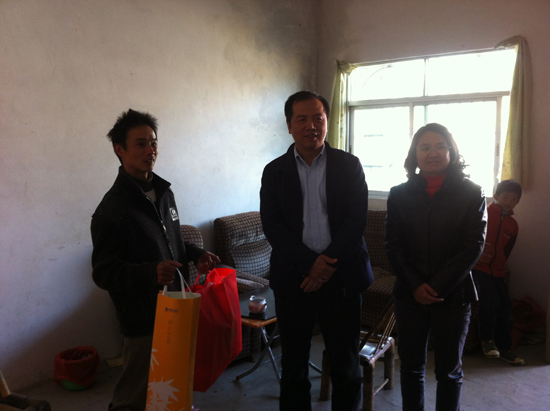 随行的中小企业改革发展处、服务与指导处、技术进步处负责人和相关人员到对口帮扶的贫困户家了解帮扶工作进展情况,为贫困户送上帮扶资金和慰问品。