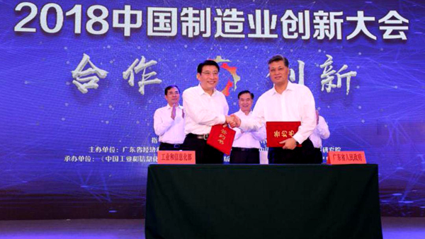 会上,苗圩、马兴瑞分别代表工业和信息化部、广东省政府签署了《工业和信息化部 广东省人民政府深化工业和信息化合作 共同推进粤港澳大湾区建设战略合作协议》,就加快实现信息互联互通、打造高水平创新平台、加快发展先进制造业、加快发展生产服务业、支持制造业与互联网融合发展等方面内容开展部省合作。