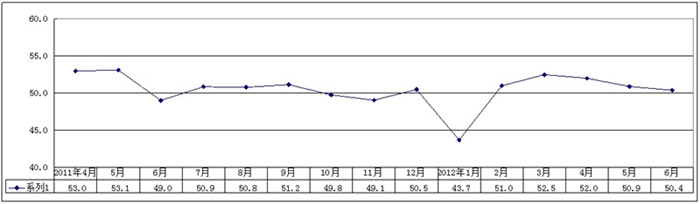 图1 2011年4月-2012年6月广东省重点企业PMI趋势图