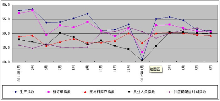 表1 2011年4月-2012年6月广东省重点企业PMI主要分项指数值表