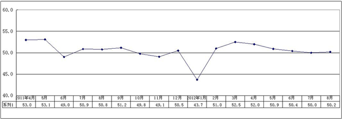 2012年8月,广东省制造业采购经理指数(重点企业PMI)为50.2,比上月回升0.2百分点,是自今年3月以来首次出现回升,综合指数继续站稳在50.0荣枯线之上。