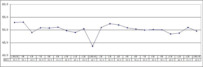 图1 2011年4月-2013年1月广东省重点企业PMI趋势图