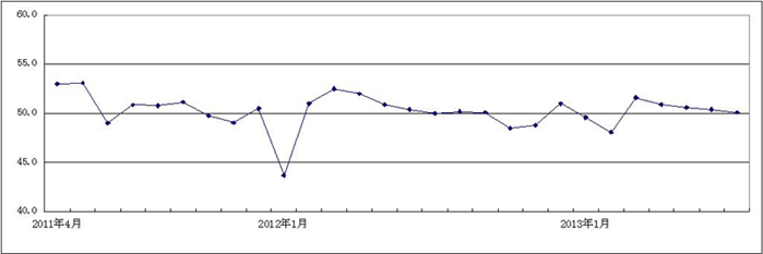 图1 2011年4月-2013年7月广东省重点企业PMI趋势图