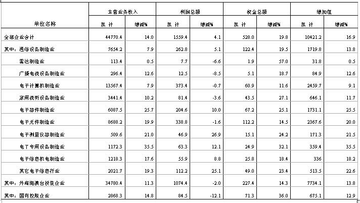 2008年1-11月规模以上电子信息制造业主要经济指标完成情况(一)